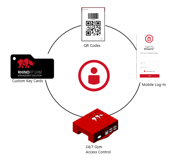 If you’re looking for a more advanced set up to run your gym 24/7, RhinoFit offers gym owners a 24/7 door access control. With this setup. you can eliminate the need for any front desk employees while extending your gym’s hours. Run your gym around the clock while tracking door call logs and unlock requests.
